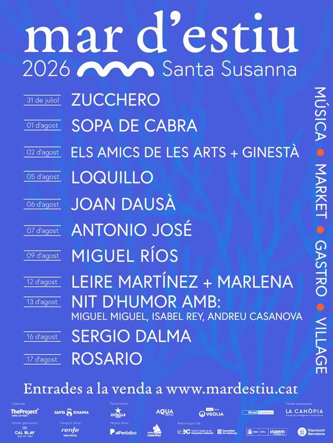 Música en vivo de alta calidad, un espacio cautivador y una experiencia inolvidable. Estas serán las tres principales características que enmarcarán el festival Mar d'Estiu en la localidad de Santa Susanna, desde el 31 de julio hasta el 17 de agosto.